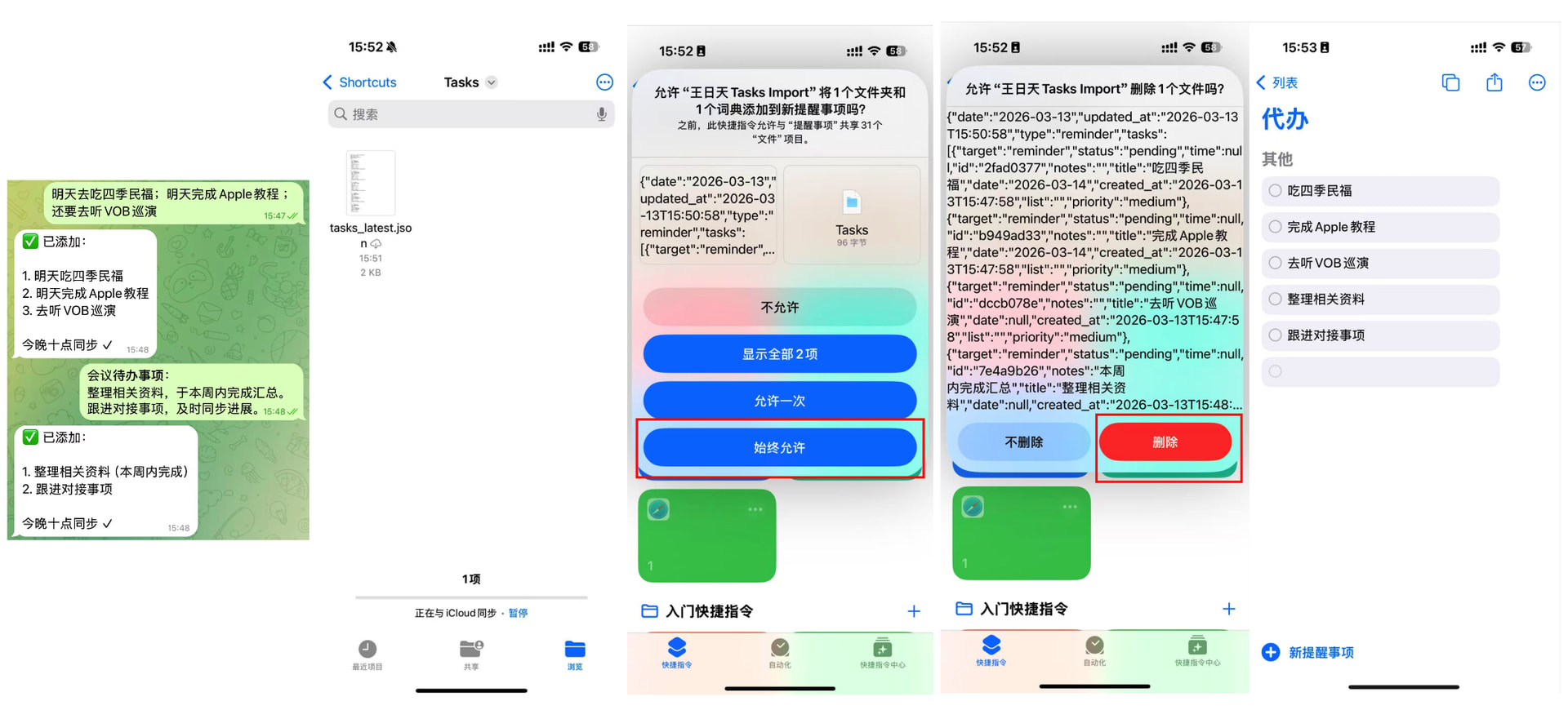 效果:你跟 Molili 聊天时说到要做的事,Molili 自动记录,每晚同步到 iPhone「提醒事项」App。