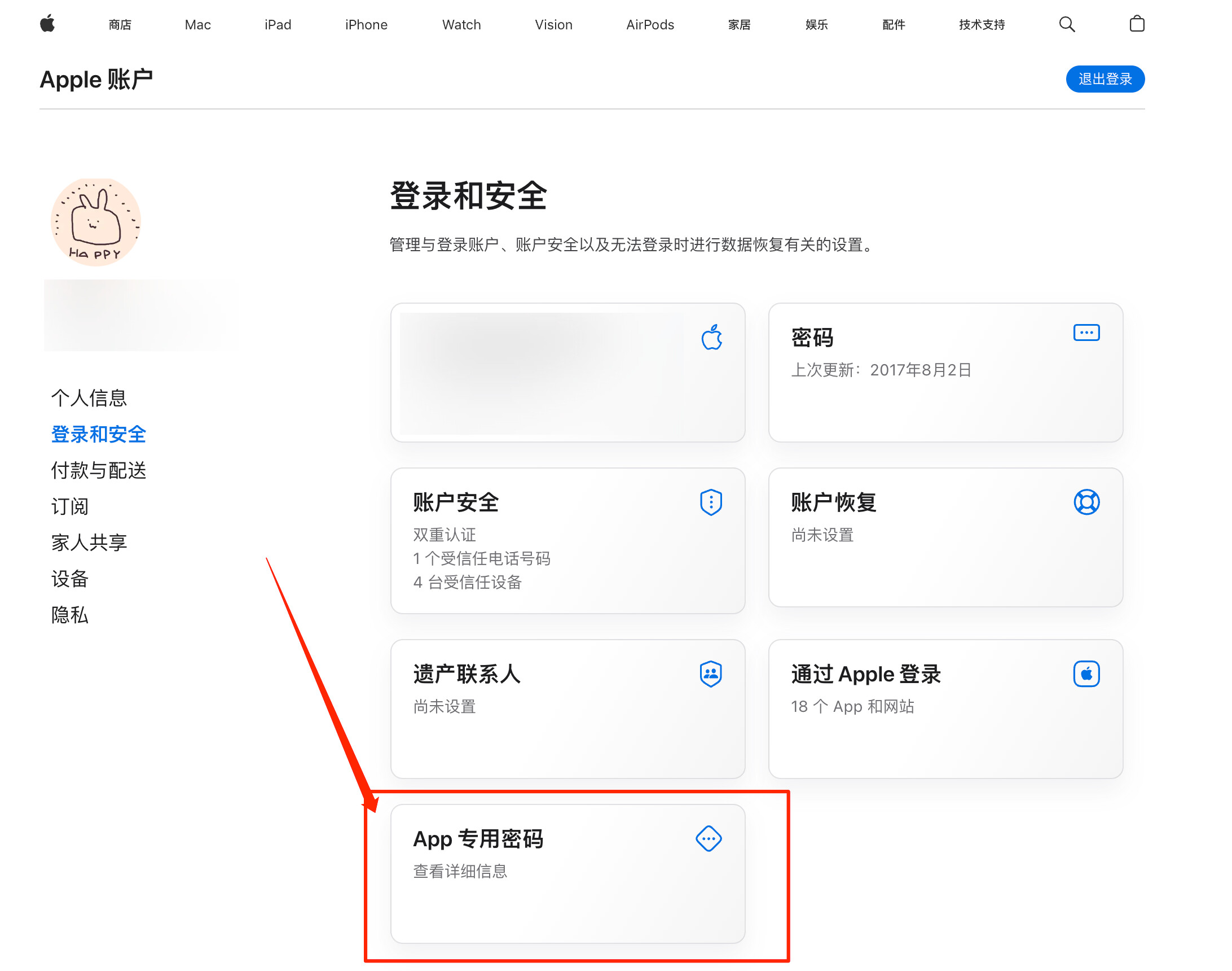 Apple ID 邮箱 + 主密码 — 用于icloud/提醒事项/备忘录/健康分析/照片/设备