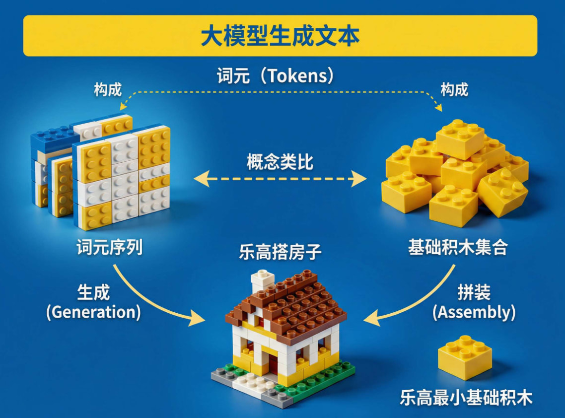 AI里的Token官方命名就叫做词元,用最简单的话来说,如果人要看字或词才能理解意思,但AI看不懂这种自然语言,需要把文字拆成最小的可以运算的单元,而这个单元就是词元。用乐高举例的话,那词元就相当于AI处理文本的基础积木,所有输入输出,都要先拆成词元才能运行。