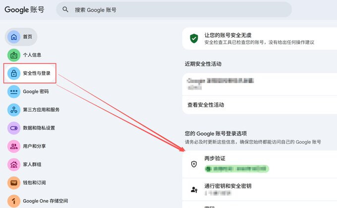 安全中心 → 开启“两步验证”。