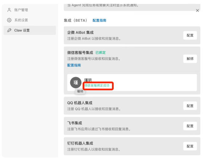 几秒钟后,按钮变成已绑定,且出现你的微信头像和昵称。