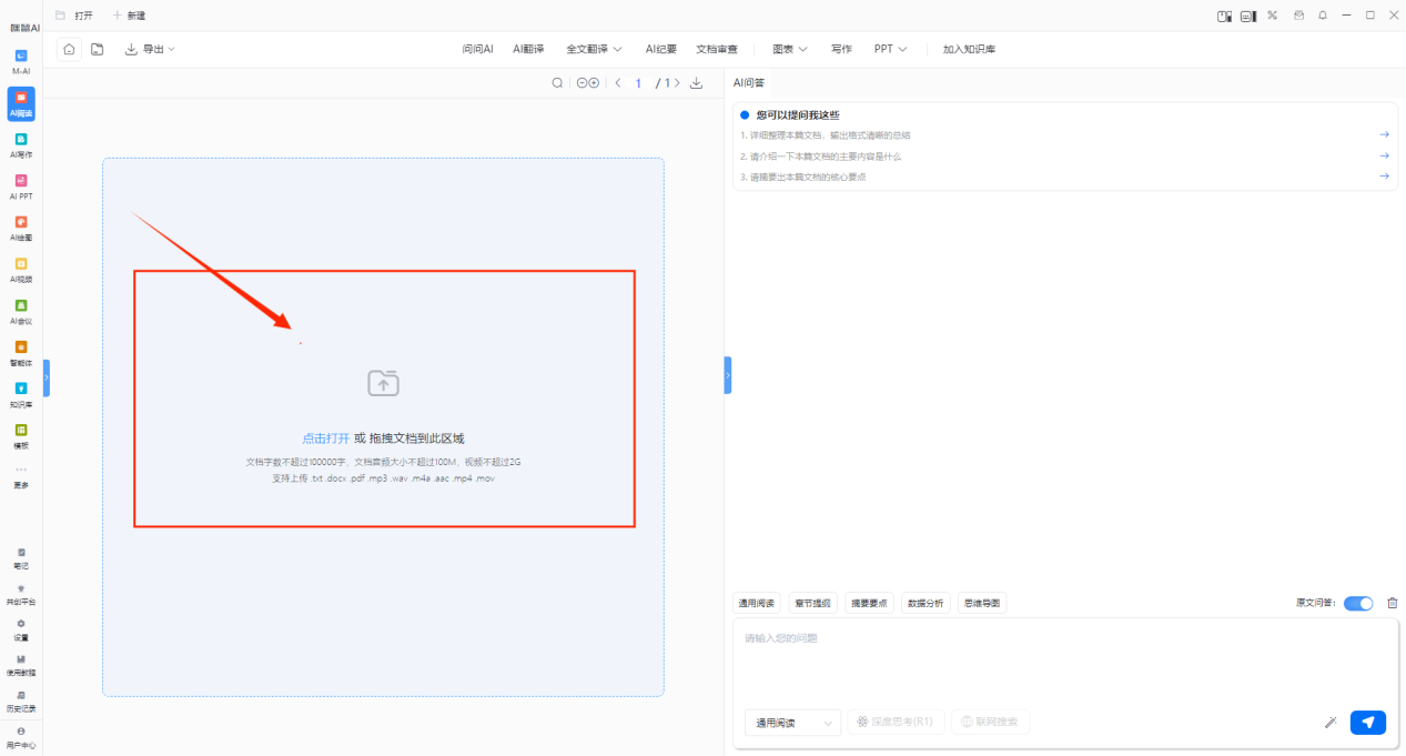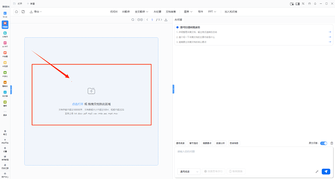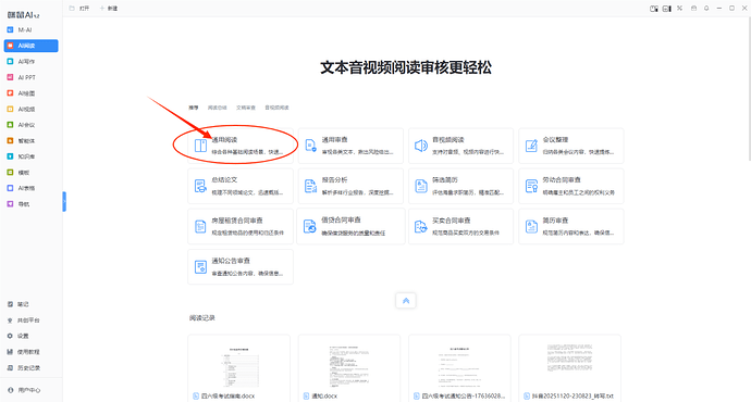 点击左边侧边栏"AI阅读"模块,点击"通用阅读"