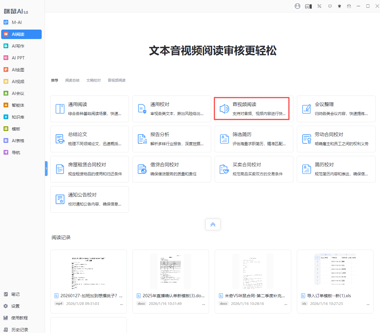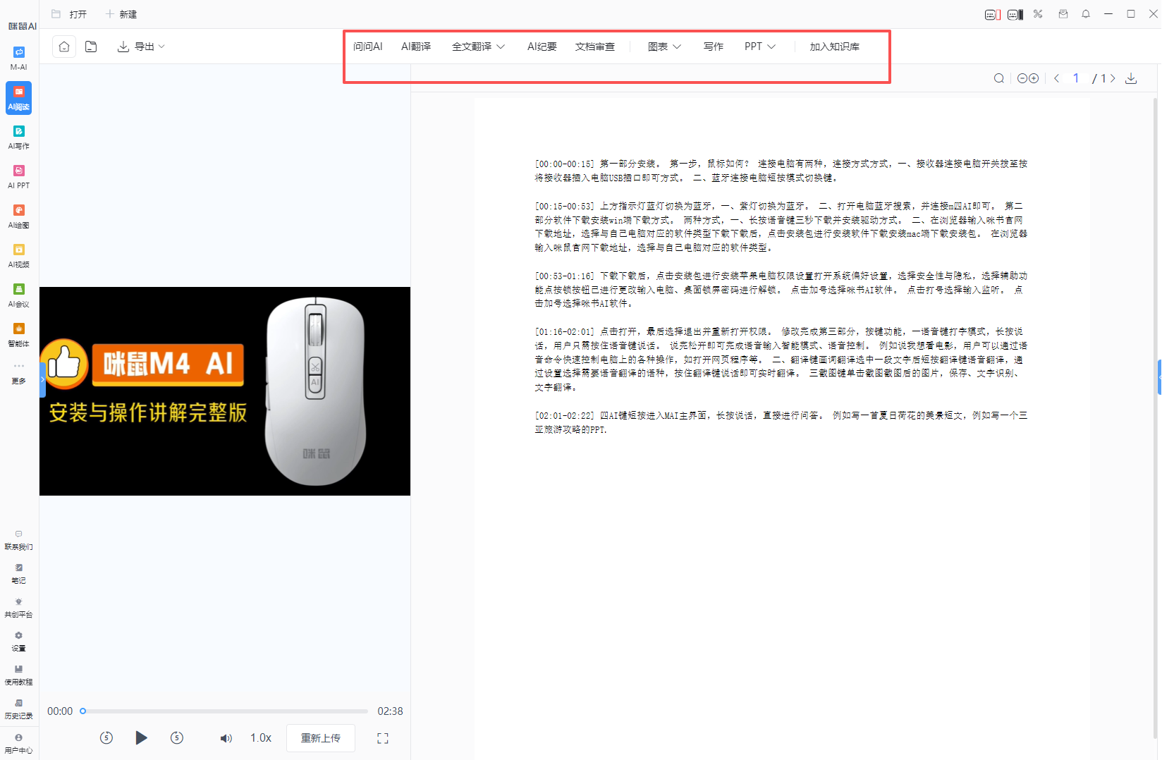 本篇是咪鼠AI实操案例系列教程的第六篇,详细介绍咪鼠AI的阅读功能。包括通用阅读提问、全文翻译、局部翻译、音视频转写以及AI文档校对五大功能,覆盖了日常办公中大部分的文档处理需求。