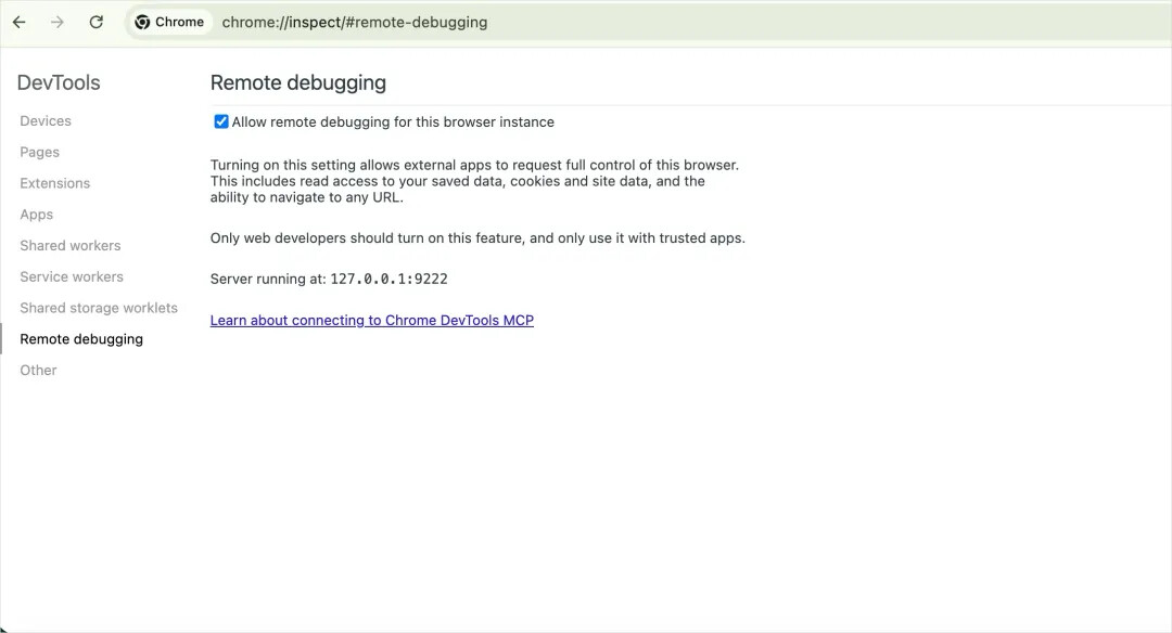 Chrome 最好更新到最新版,然后把远程调试相关设置开一下。可以在地址栏输入chrome://inspect/[#remote](javascript:;)-debugging,进行勾选