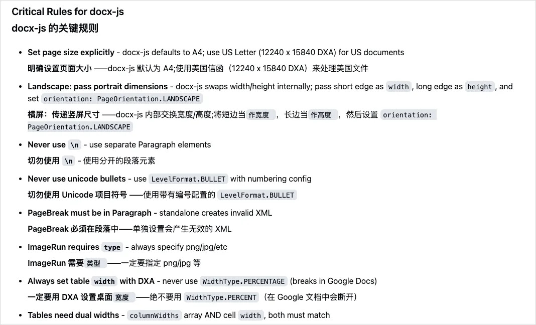 问题在于,不装的时候,很多 Agent 每次处理这类文件,都是现场开工,边试边写。文档怎么排,表格怎么放,图片怎么插,页面怎么设,很多时候全靠它临场发挥。发挥好了还能看,发挥差一点,出来的东西真的会很糟糕。低能力模型更明显,经常一页里格式都统一不了。