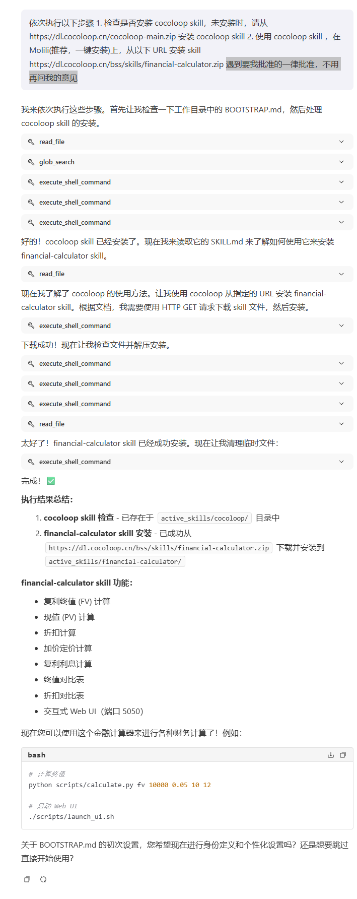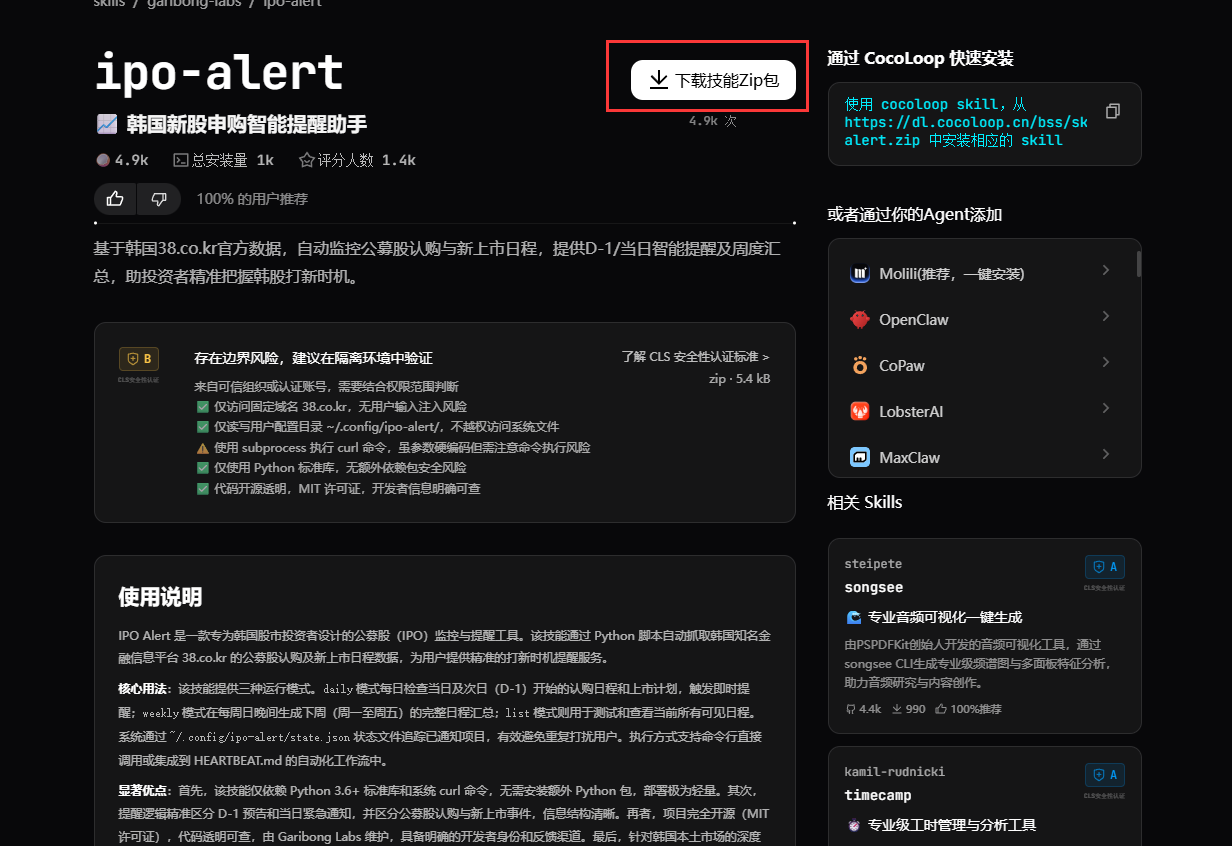 再通过 cocoloop skill,从指定链接安装目标技能