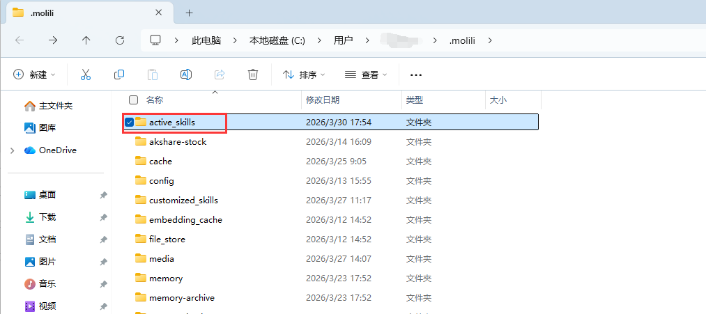 在 active_skills 里新建一个文件夹,名字就用这个技能名。
