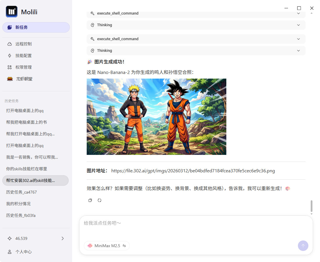 - 进阶党:自主添加skills,让Molili功能更丰富,甚至实现生图。