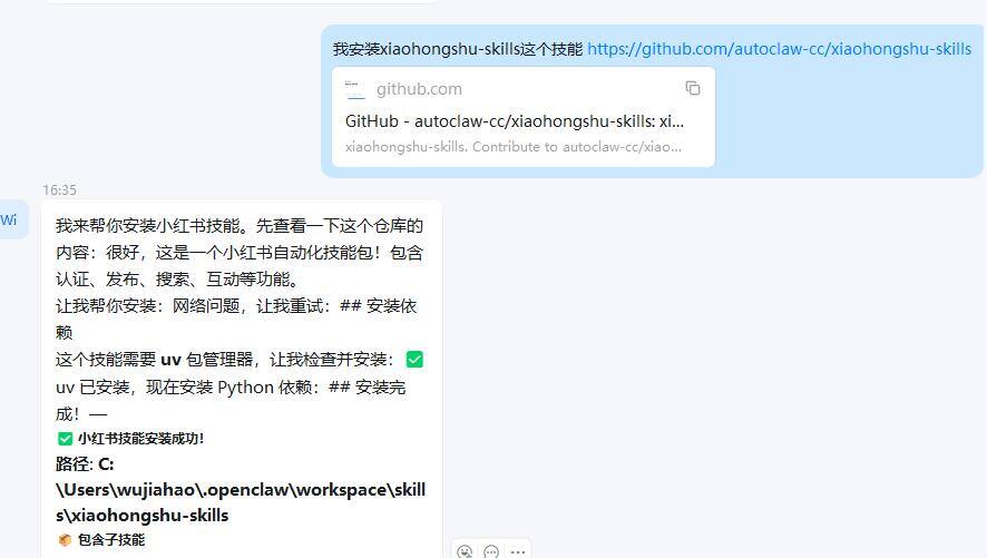 帮我安装xiaohongshu-skills这个技能 https://github.com/autoclaw-cc/xiaohongshu-skills