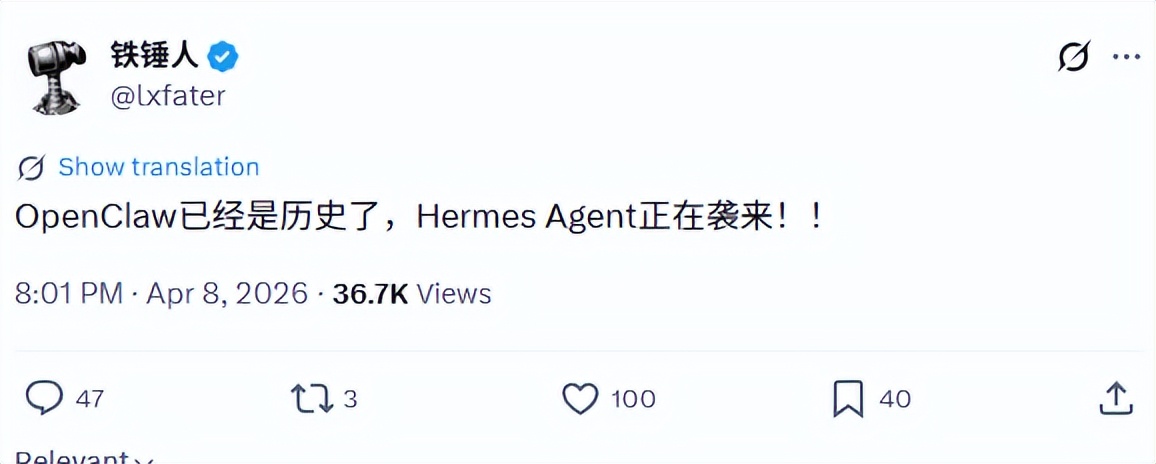 就在OpenClaw被骂得最惨的这几周,Hermes Agent已经开始刷屏了。