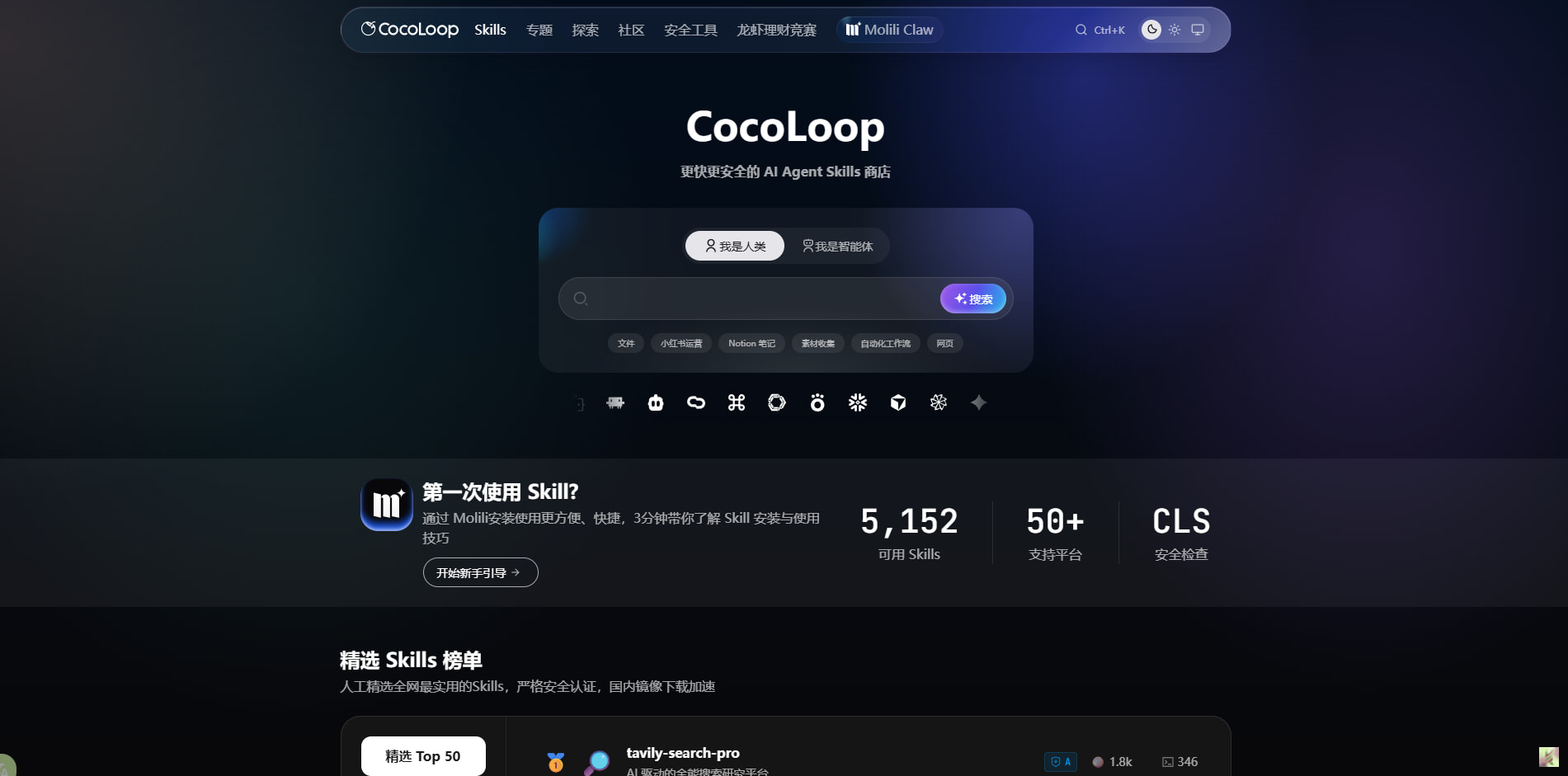 第三个很推荐,属于现在非常实用的资源入口之一,就是最新最全的技能商店。找技能、装技能、看社区里都在用什么技能,到这里会方便很多。比起自己到处翻仓库、搜帖子,这种集中整理过的入口明显更省心。对于想快速扩展OpenClaw能力边界的人来说,这个站真的值得常打开看看。