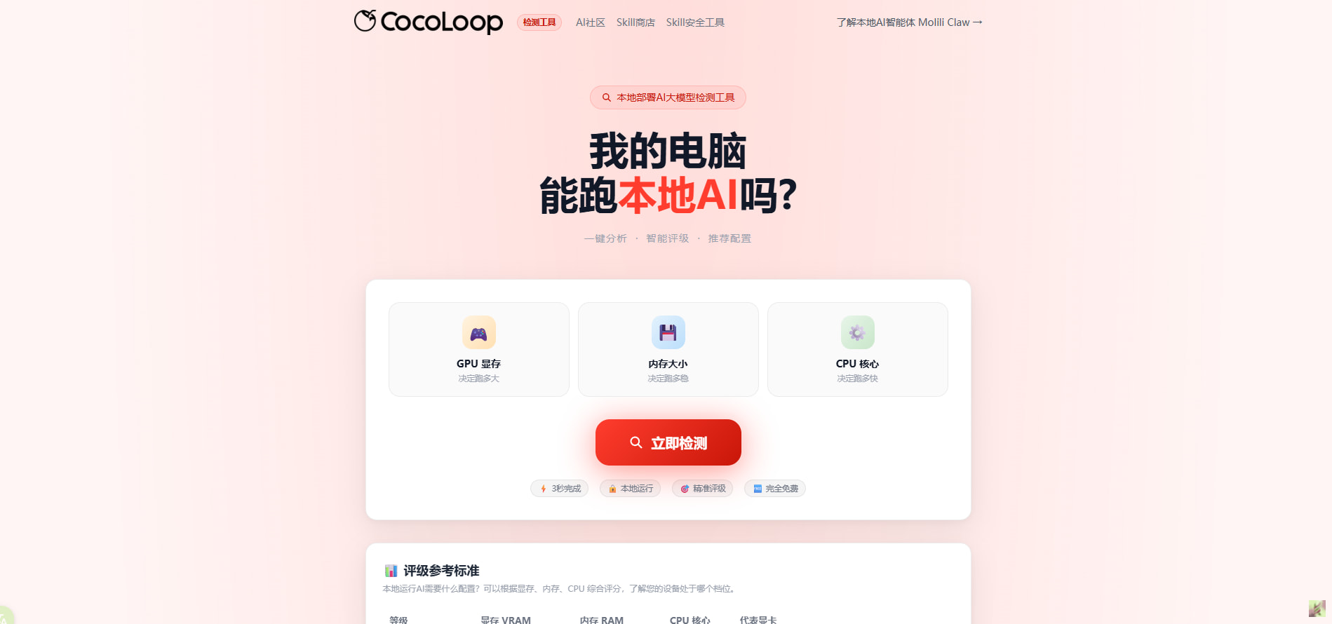 第五个也很有意思,是一个可以一键检测本地部署硬件的网站。很多人刚准备本地跑一些东西的时候,第一反应往往是“我这台机器到底行不行”。这个站点就很适合解决这种问题,直接帮你判断本地硬件情况,少走一些试错弯路。对准备本地部署的人来说,这类工具通常比想象中更有用。