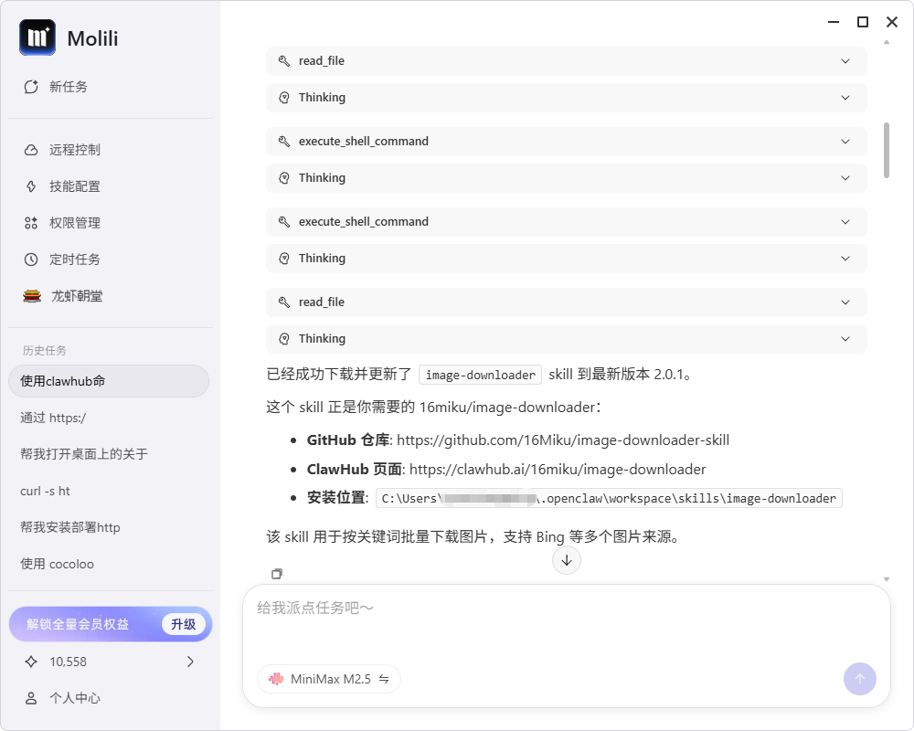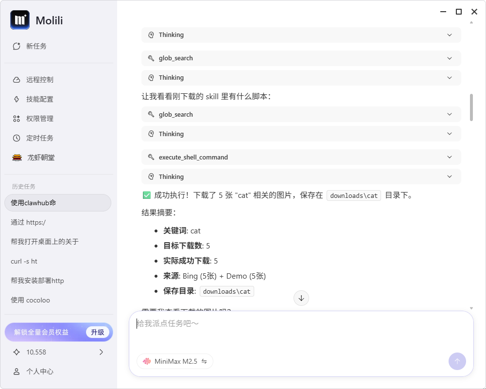 安装完技能后,输入图片下载指令即可获取相关图片。