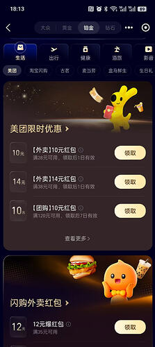 支付宝会员积分兑换那里每周三可以看看,美团的话打开APP首页点“我的”-“红包省钱卡”,有时候会弹出限时活动。领完记得看有效期,一般是当天或者三天内要用掉。