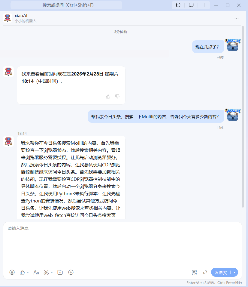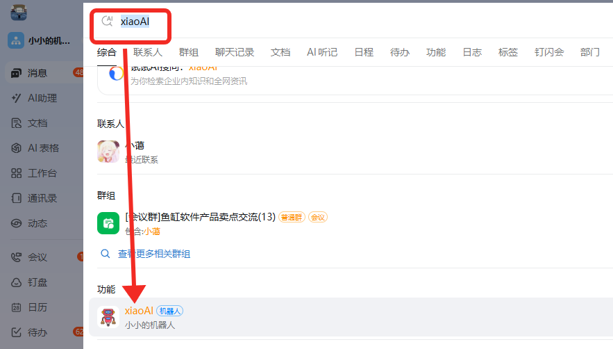 1、在钉钉里搜一下你的机器人名称。比如我的叫做“xiaoAI”跟它对话,就可以了。