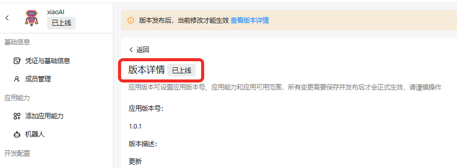 10、添加一下版本描述,就可以了。点击发布。发布成功后,状态会变成【已上线】