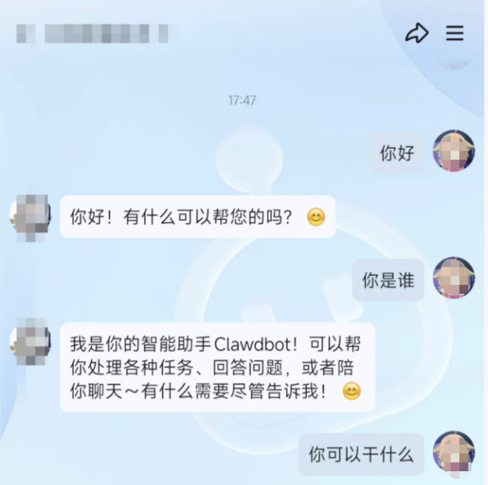配置完成后,即可在 QQ 中与已接入 OpenClaw 的机器人进行单独聊天或群聊。机器人能够以 AI 方式对话则说明接入成功。